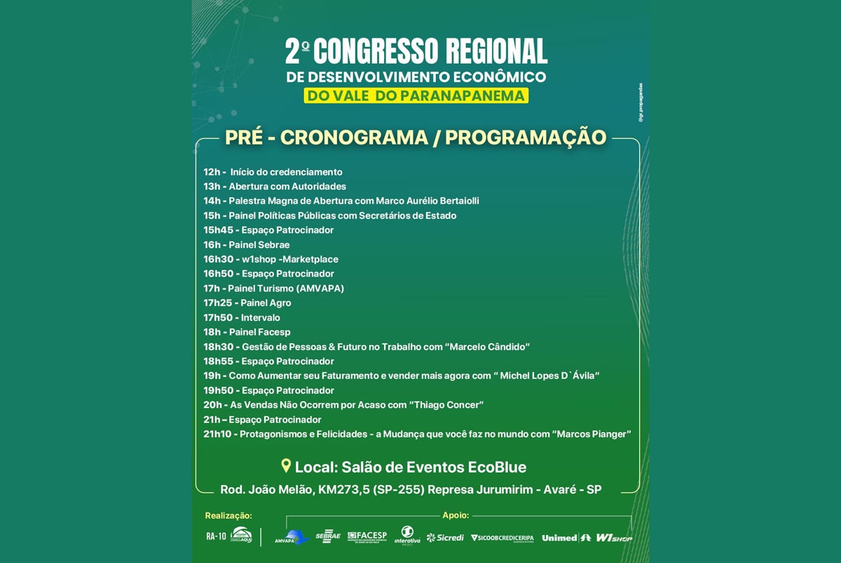O Vale do Paranapanema se prepara para receber, no próximo dia 27 de novembro, o 2º Congresso Regional de Desenvolvimento Econômico, um dos eventos mais aguardados por empreendedores, empresários, gestores públicos e todos aqueles que atuam no fortalecimento do desenvolvimento regional.
