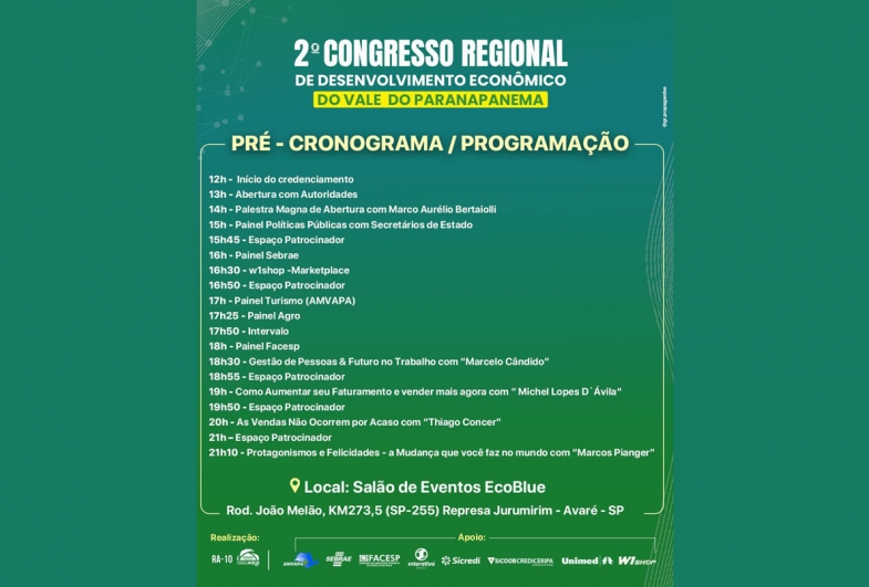 O 2º Congresso Regional de Desenvolvimento Econômico do Vale do Paranapanema é mais do que um evento: é uma ponte para novos caminhos, ideias e oportunidades que podem transformar o futuro da região.