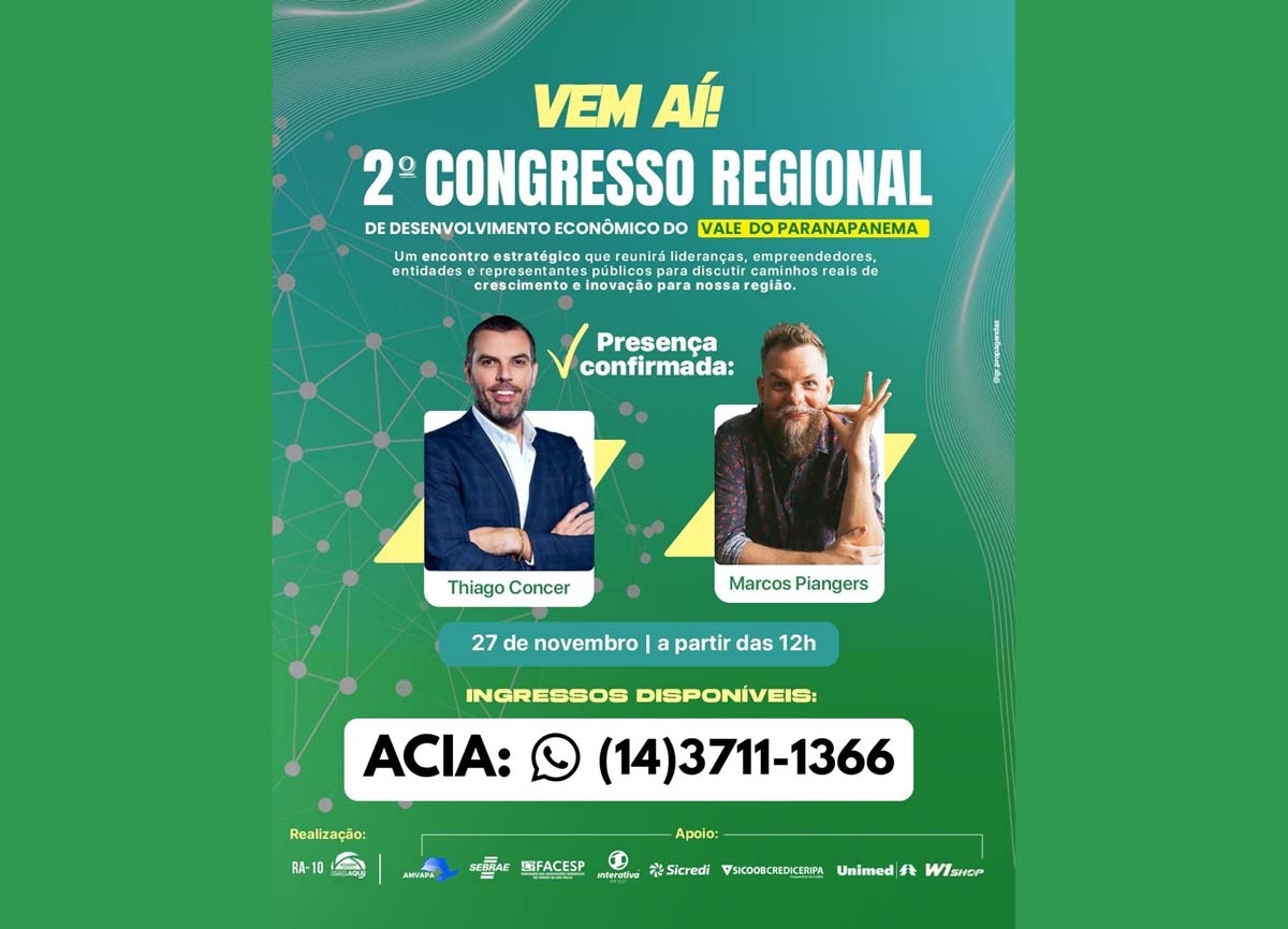 O congresso é uma oportunidade única de aprendizado e integração, incentivando o empreendedorismo e o diálogo entre empresas, instituições e lideranças do Vale do Paranapanema. A Acia reforça o convite aos empresários e profissionais de toda a região para participarem desse importante movimento de desenvolvimento e fortalecimento econômico.