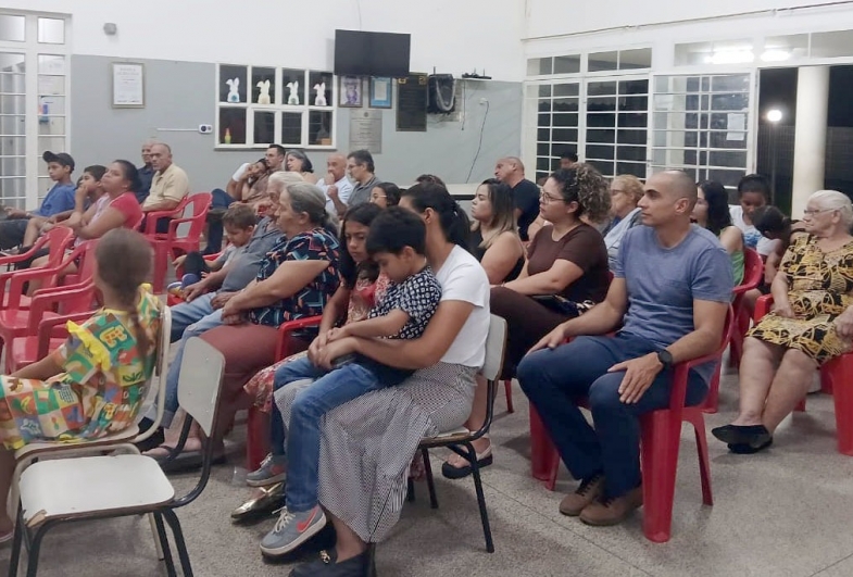A noite, às 19h30, inicia-se a Semana de Saúde Emocional com momentos de oração, rodas de conversa e convivência, sorteio de brindes, criando um ambiente de escuta ativa e fortalecimento emocional.