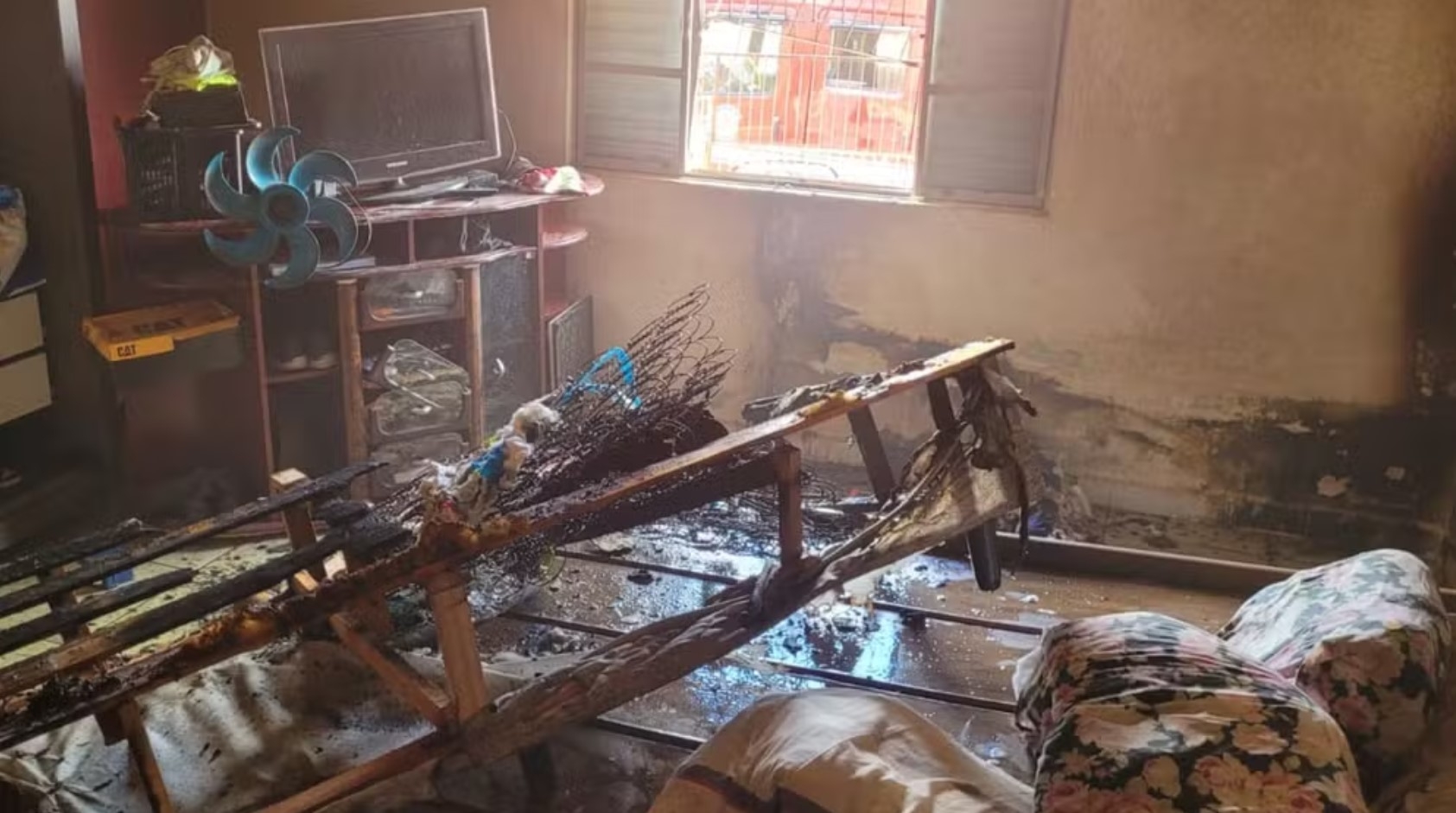 Ainda segundo a corporação, o incêndio começou em um quarto da casa e atingiu uma cama e um colchão, que ficaram destruídos.