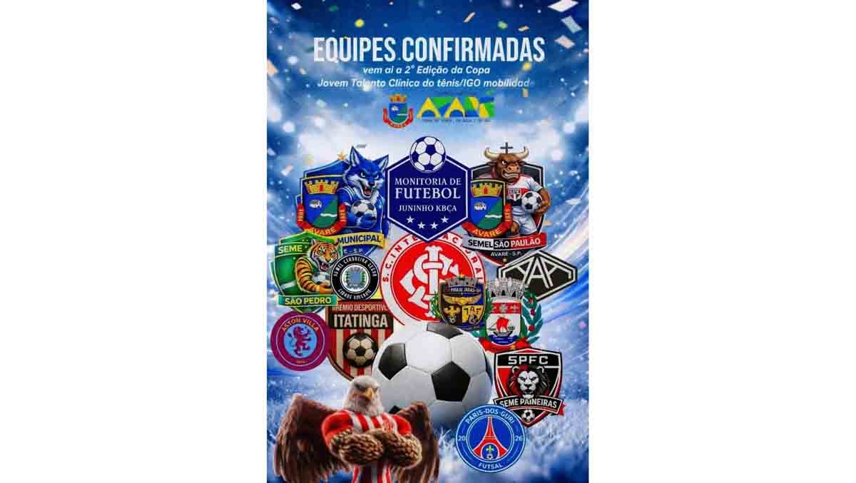 Agora, em 2026, a Copa ganha um novo patamar. Com a organização da Secretaria Municipal de Esportes, a competição se torna intermunicipal e amplia seu alcance, reunindo 33 equipes de diversas cidades da região. Ao todo, mais de 650 jovens atletas, com idades entre 10 e 18 anos, entram em campo mostrando talento, dedicação e sonhos. A abertura será no campo do São Paulo e os jogos acontecem na Associação Atlética Avareense, Campo do São Pedro e também no Campo do São Paulo.