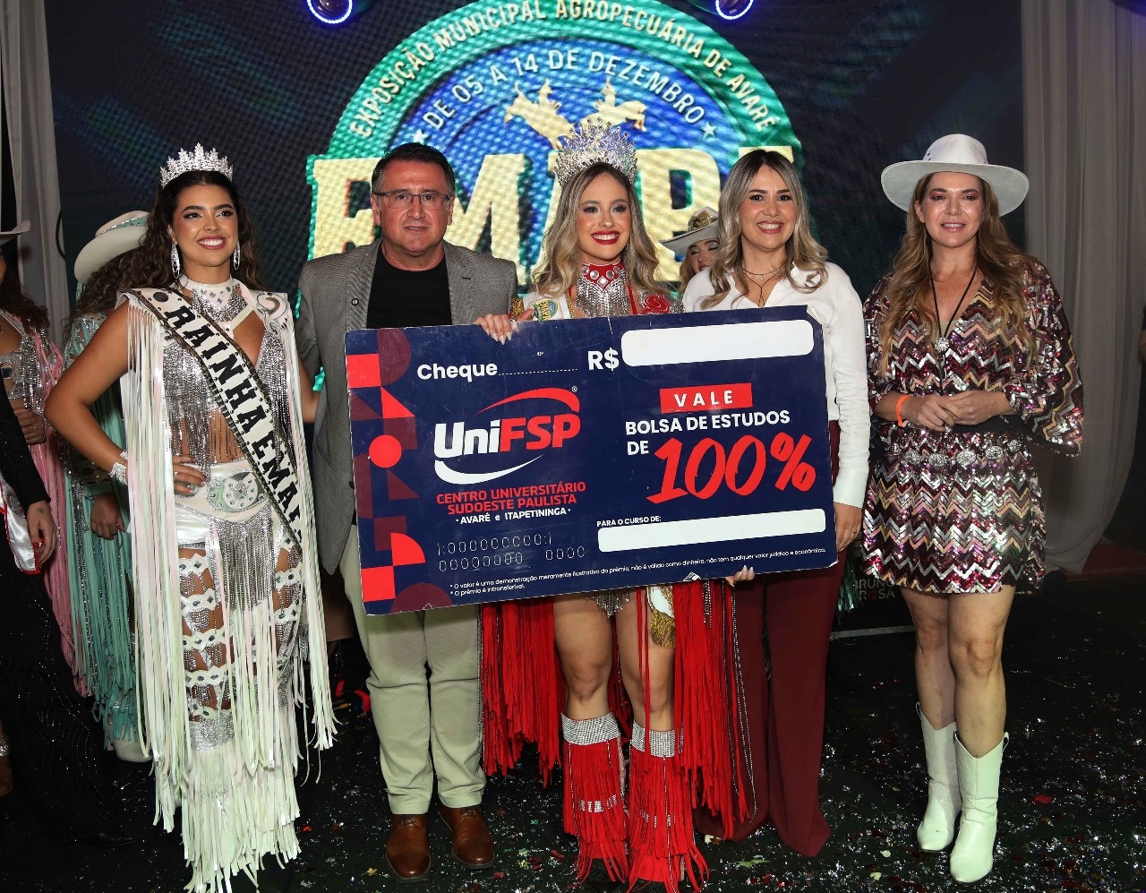 Além da chance de representar a tradicional feira avareense, a rainha foi premiada com bolsa de 100% na UniFSP. As princesas receberam bolsa de 50%. A miss simpatia e a madrinha do rodeio foram premiadas com bolsa de estudo de 35%.