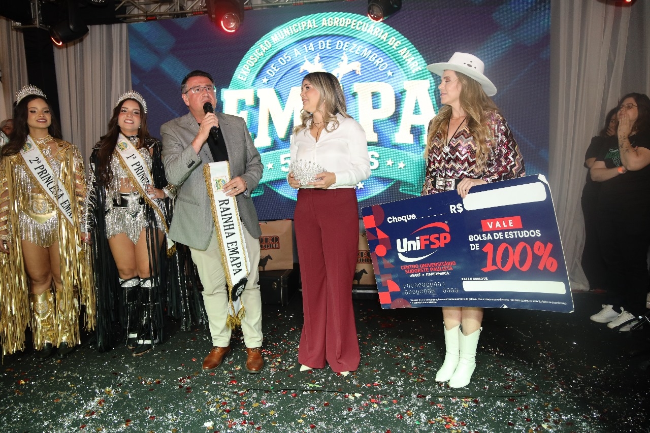 O Concurso Rainha da 55ª Emapa teve patrocínio do Centro Universitário Sudoeste Paulista (UniFSP) e da Rodeo Store, com apoio da Secretaria Municipal da Cultura.