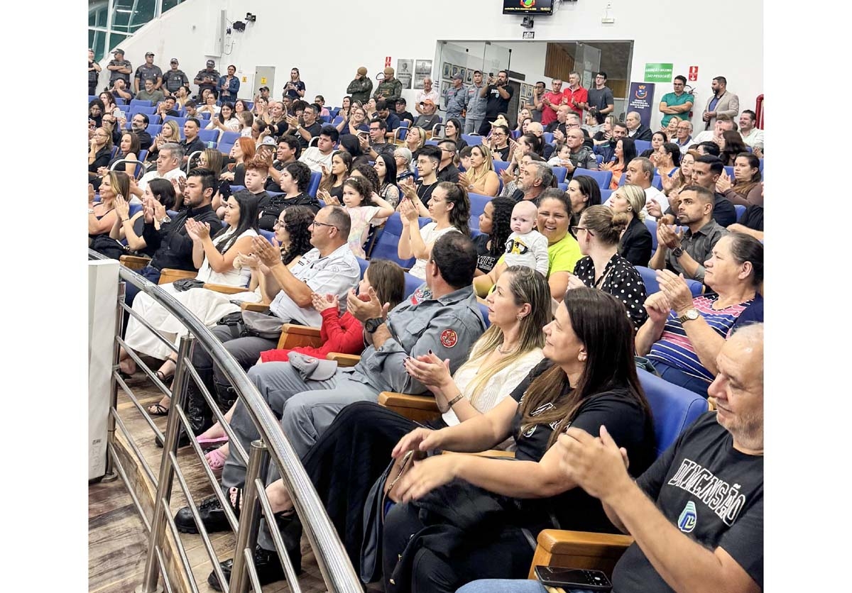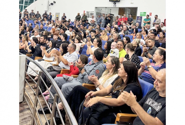 A sessão também prestou homenagens a profissionais de diversas forças de segurança - entre elas Polícia Civil, Polícia Militar, Corpo de Bombeiros, Polícia Ambiental, Polícia Penal, Vigilantes, Guarda Municipal, Tiro de Guerra e Associação dos Veteranos - reconhecendo o mérito, a dedicação e os serviços prestados por esses agentes à comunidade, em uma celebração que reforçou o respeito institucional e o compromisso coletivo com a proteção da cidade.