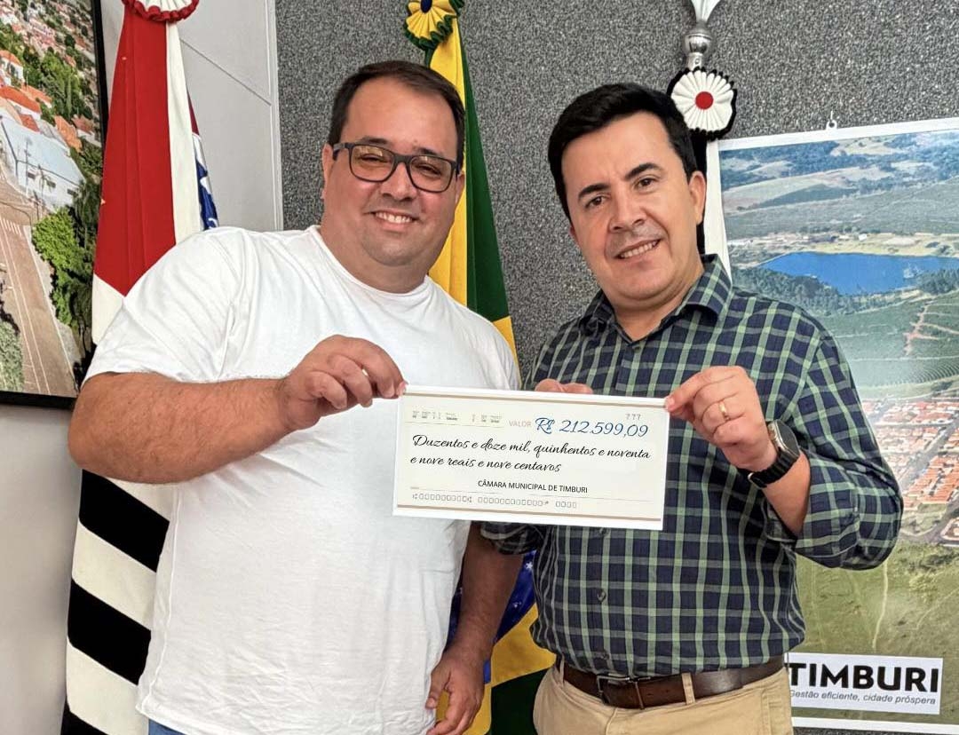 A entrega simbólica do cheque foi realizada pelo presidente da Câmara Municipal, Marcelo da Silva, conhecido como Marcelo do Abdiel, ao prefeito Cristiano Amorim, representando a união entre os poderes em prol do desenvolvimento de Timburi.