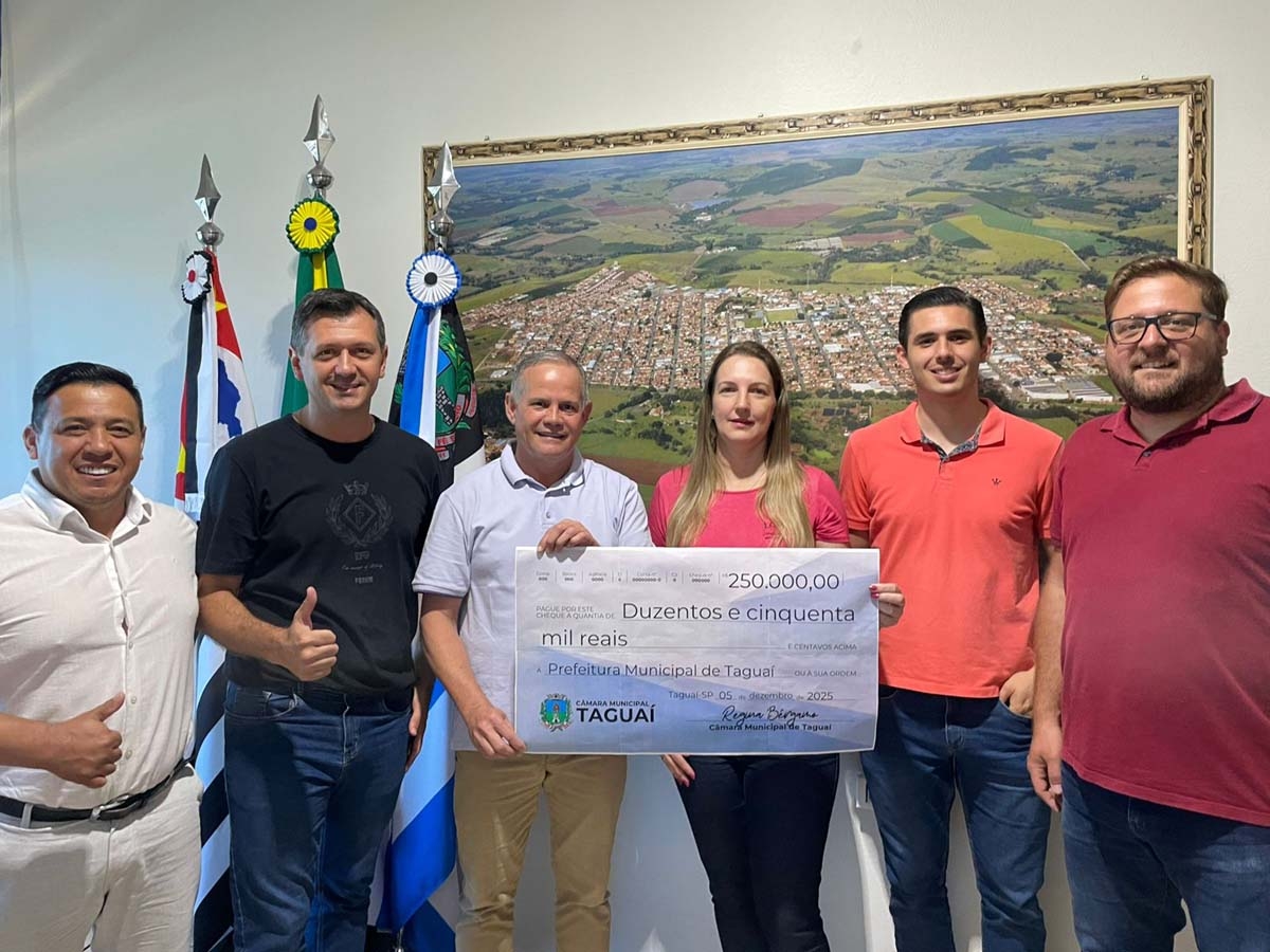 A Mesa Diretora da Câmara Municipal realizou um ato de significativo impacto social na manhã desta sexta-feira, devolvendo um cheque no valor de R$ 250.000 à Prefeitura. A devolução representa uma economia orçamentária do Poder Legislativo. O recurso repassado já tem destino certo: o prefeito Edinho Fundão afirmou o compromisso de utilizar a verba para custear a cesta de natal dobrada no mês de dezembro para todos os servidores da Prefeitura. Essa iniciativa é resultado da parceria bem-sucedida entre o Executivo e o Legislativo de Taguaí, que também conta com o apoio do vice-Prefeito Rafael Corona.