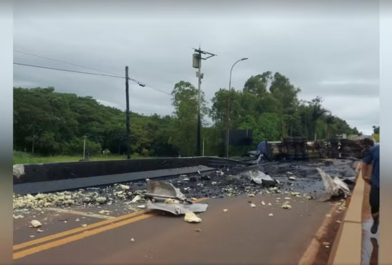 Segundo a Defesa Civil do município, a carreta estava carregada com cerca de 29,9 toneladas do produto, e seguia para o Paraná. Nesta segunda-feira (15), o veículo seguia no acostamento da rodovia.