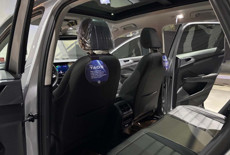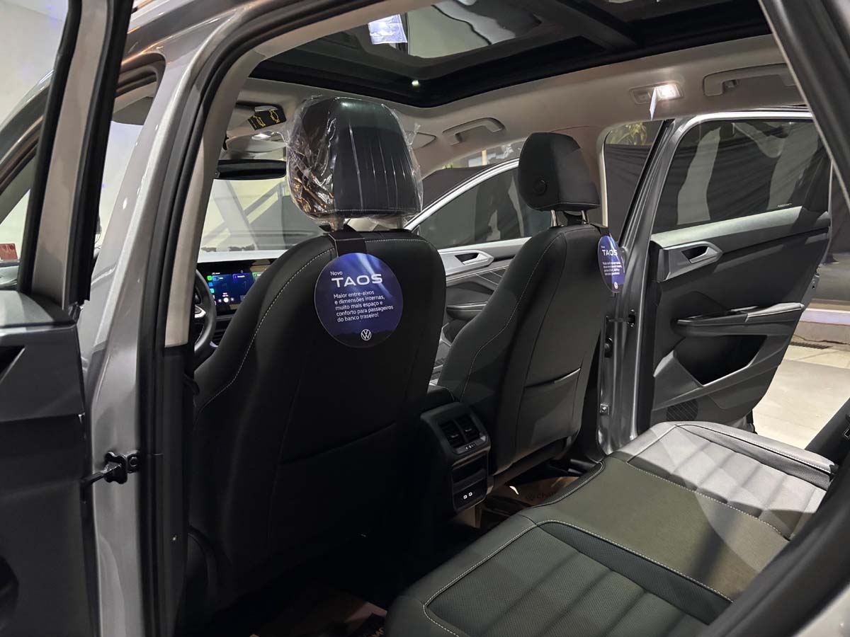 O Novo Taos chama atenção pelo amplo espaço interno e pelo elevado nível de conforto, aliados a um pacote tecnológico avançado. O modelo alcançou nota máxima em segurança, com cinco estrelas certificados pelo Instituto Internacional LatinCap, e reúne diversos sistemas de assistência ao motorista, como controle adaptativo de velocidade, assistente de permanência em faixa, detector de ponto cego e assistente de saída de vaga, capaz de monitorar o entorno ao sair de ré e acionar a frenagem automática, se necessário.