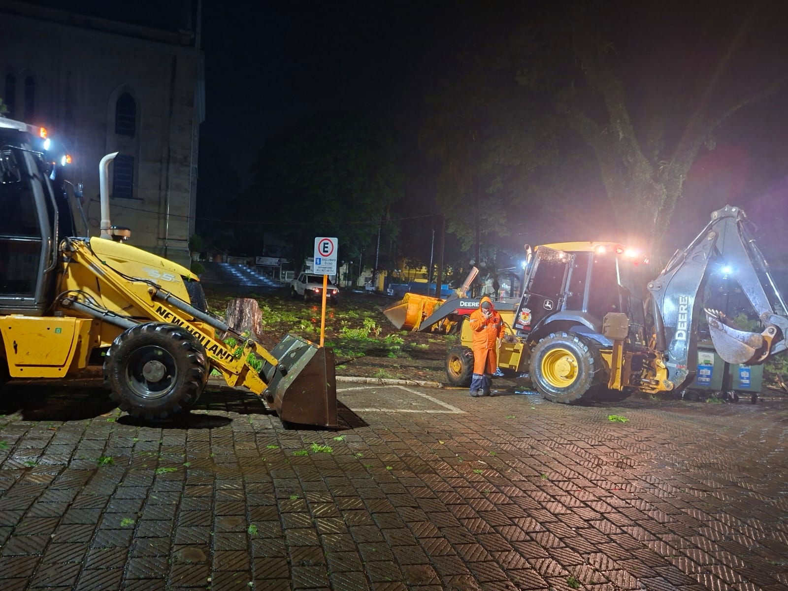 Desde as primeiras horas do incidente, as equipes da Defesa Civil vêm atuando nos atendimentos emergenciais, priorizando a remoção de árvores caídas, liberação de vias públicas e vistoria de estruturas que possam ter sido danificadas.