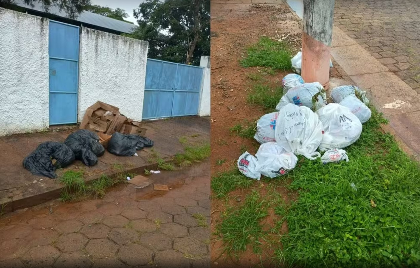 Imagens enviadas ao g1 nesta segunda-feira (9) mostram sacos de lixo acumulados em frente às casas do bairro Braz 1.