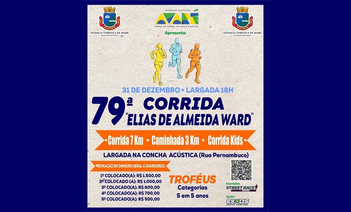 Continuam abertas até dia 29 de dezembro as inscrições para a 79ª Corrida “Elias de Almeida Ward”, a mais tradicional prova do interior de São Paulo realizada no Dia de São Silvestre.