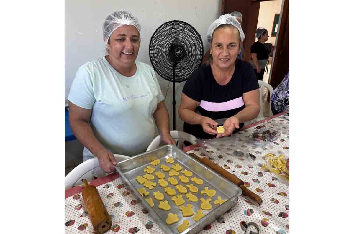 Também foram trabalhadas técnicas de produção de bolacha amanteigada com aplicação de glacê colorido, estimulando a criatividade e o aperfeiçoamento das habilidades manuais.