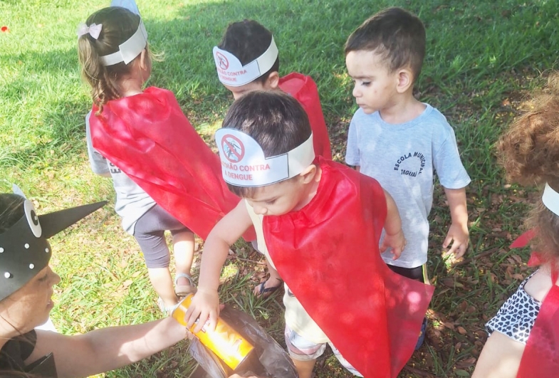 Por meio de brincadeiras, experiências e vivências, os pequenos aprenderam sobre a importância de manter os ambientes limpos e livres de água parada, tornando-se verdadeiros agentes no combate à dengue. As ações buscaram estimular o cuidado diário e a responsabilidade com o espaço em que vivem.