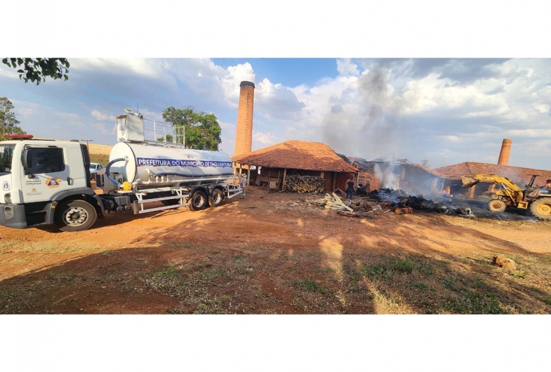 Por volta das 15h30 deste sábado (20), a Defesa Civil de Taquarituba foi acionada após um princípio de incêndio registrado em uma propriedade rural onde funciona uma olaria. O fogo teve início durante a queima de papéis para limpeza, quando, provavelmente, um material em chamas entrou em contato com a lenha armazenada no local.