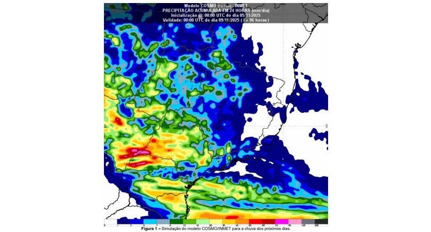 De acordo com o órgão estadual, há condições para chuvas intensas acompanhadas de granizo isolado, alta incidência de raios, rajadas de vento extremas e possibilidade de microexplosões (downbursts) pontuais.