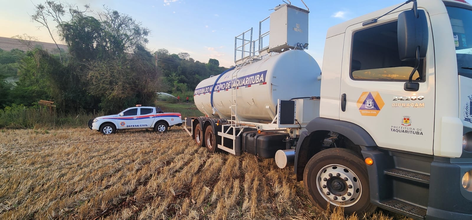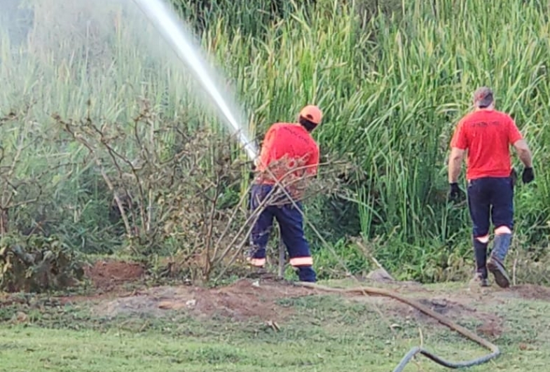 Na tarde deste domingo (05), por volta das 16h20, a equipe da Defesa Civil de Taquarituba foi acionada para combater um incêndio em uma área de mata do município. As chamas se espalharam rapidamente pela vegetação seca, exigindo intenso trabalho dos agentes para conter o avanço do fogo.