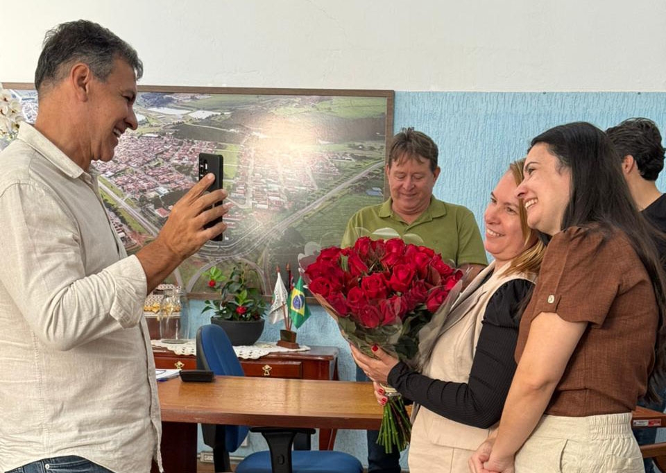 Em gesto de agradecimento e hospitalidade, o prefeito presenteou o parlamentar com uma camisa oficial da equipe de Sarutaiá que disputou os Jogos Regionais. A primeira-dama, Wilma, e Mariela, esposa do vice-prefeito Gango, também entregaram um buquê de rosas destinado à esposa do deputado, a deputada estadual Dani Alonso, que participou por chamada de vídeo e fez questão de agradecer pessoalmente a lembrança.