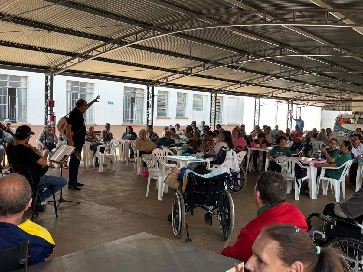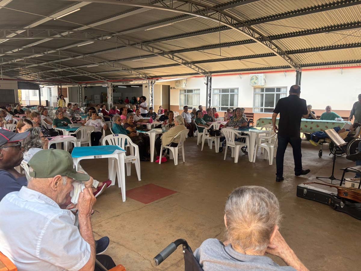 A ação reuniu idosos do Centro de Convivência do Idoso e do Lar São Vicente de Paulo, promovendo uma integração calorosa entre os participantes. Através da música, a iniciativa buscou mais do que entretenimento: foi um convite para o resgate de memórias afetivas, o fortalecimento dos vínculos sociais e a valorização das vivências individuais e coletivas.