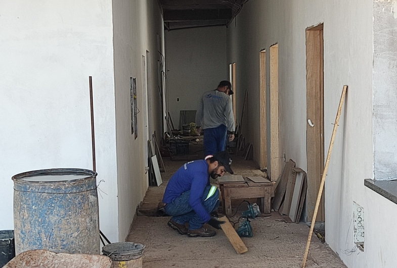 O prédio já conta com reboco externo concluído e avança nos acabamentos internos, com a parte elétrica entrando na reta final, além dos serviços hidráulicos.
