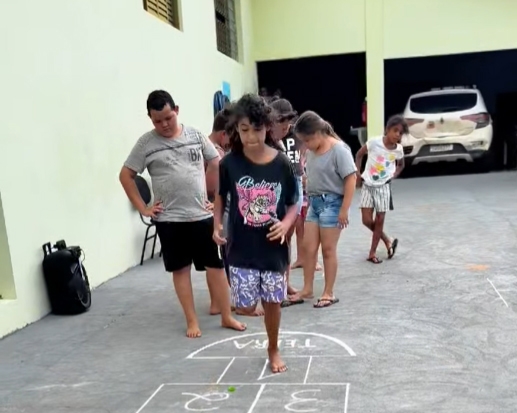 Entre as brincadeiras realizadas estiveram Escravo de Jó em dupla, Pega a tampinha, Morto-vivo com música, Passa anel, Mímica em roda, Batata quente, Dança da cadeira, Amarelinha, o criativo Escravo de Jó com o corpo, além do tradicional pião. As atividades despertaram entusiasmo, risadas e participação ativa das crianças e adolescentes.