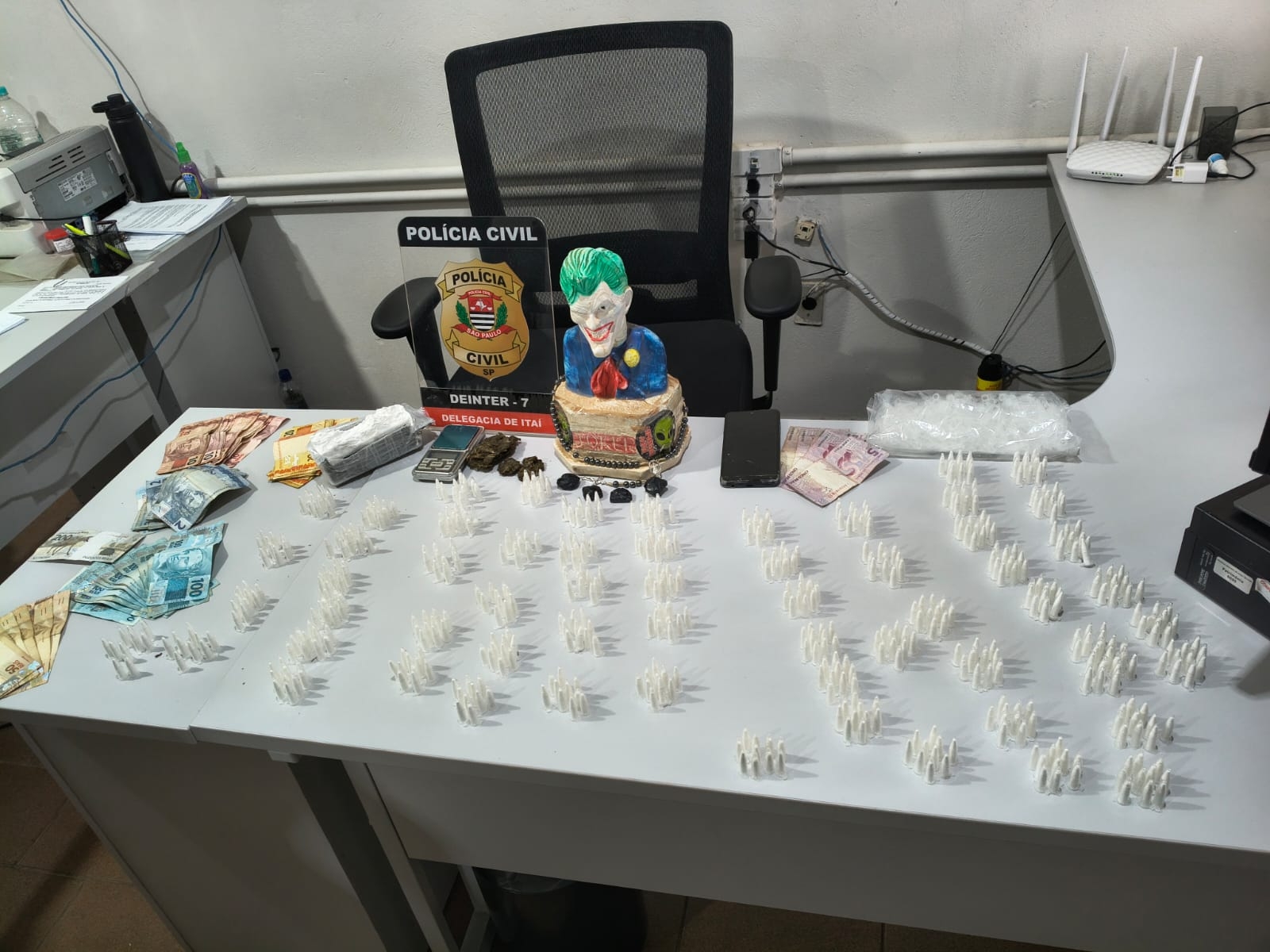 Após análise técnico-jurídica do Delegado Titular de Itaí, Luiz Fernando Rotelli, foi decretada a prisão em flagrante pelo crime de tráfico de drogas. O caso foi comunicado ao Poder Judiciário e seguirá sob investigação, com a realização de diligências complementares no âmbito do inquérito policial. O preso está à disposição da Justiça.