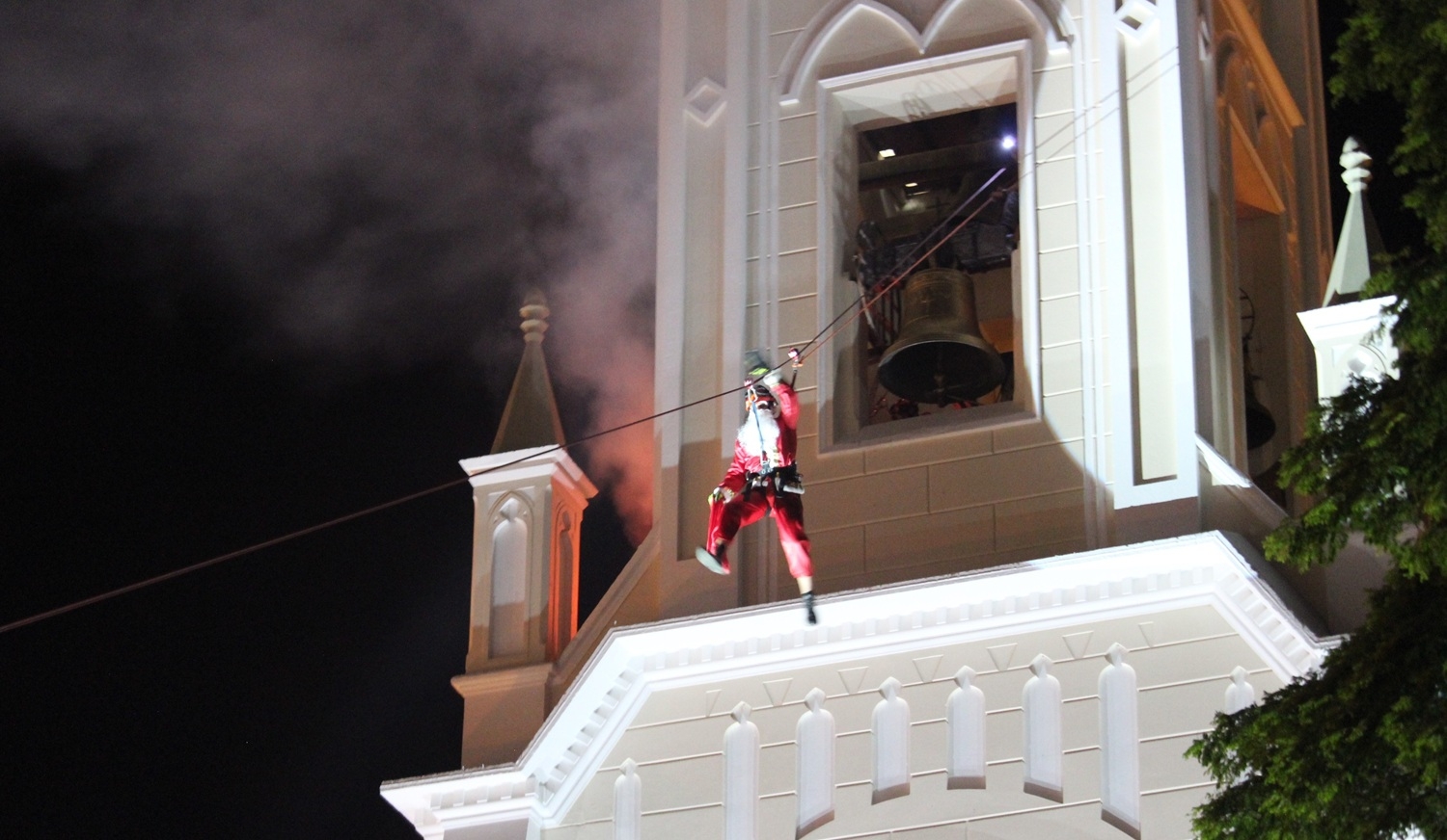 O público poderá conferir o bom velhinho descendo a torre do Santuário Nossa Senhora das Dores na noite de sexta-feira, 19, às 20 horas.