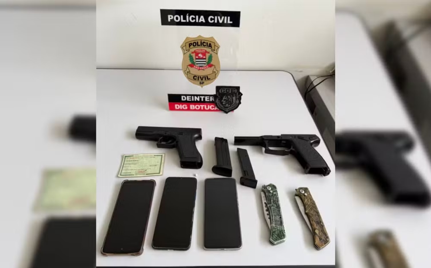 A Polícia Civil apreendeu dois simulacros de arma de fogo e dois canivetes na casa de um adolescente de 15 anos em Botucatu (SP). Ele é suspeito de articular atos violentos ligados a uma manifestação nacional que, segundo a investigação, estava prevista para ocorrer nesta segunda-feira (2), em São Paulo (SP).