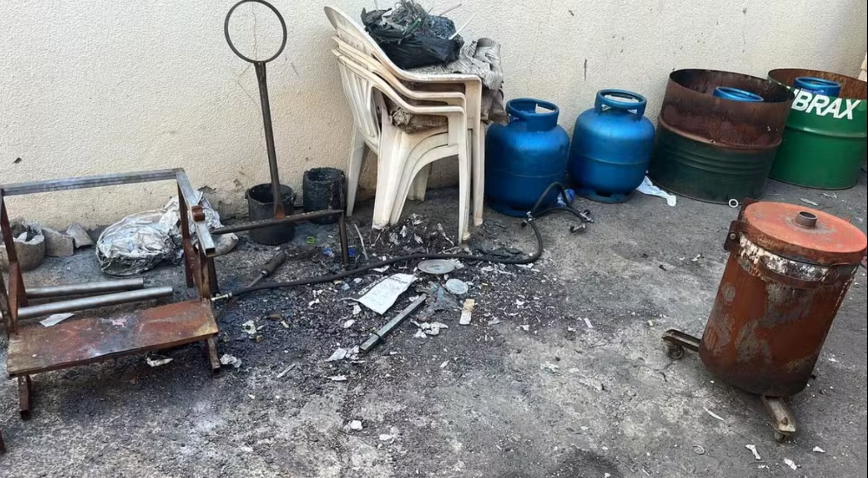 Estrutura funcionava no quintal de uma casa em Ourinhos (SP), com caldeiras e botijões adaptados para derreter fios e cabos. Dono do imóvel foi preso em flagrante por receptação qualificada, crimes ambientais e contra a ordem econômica.