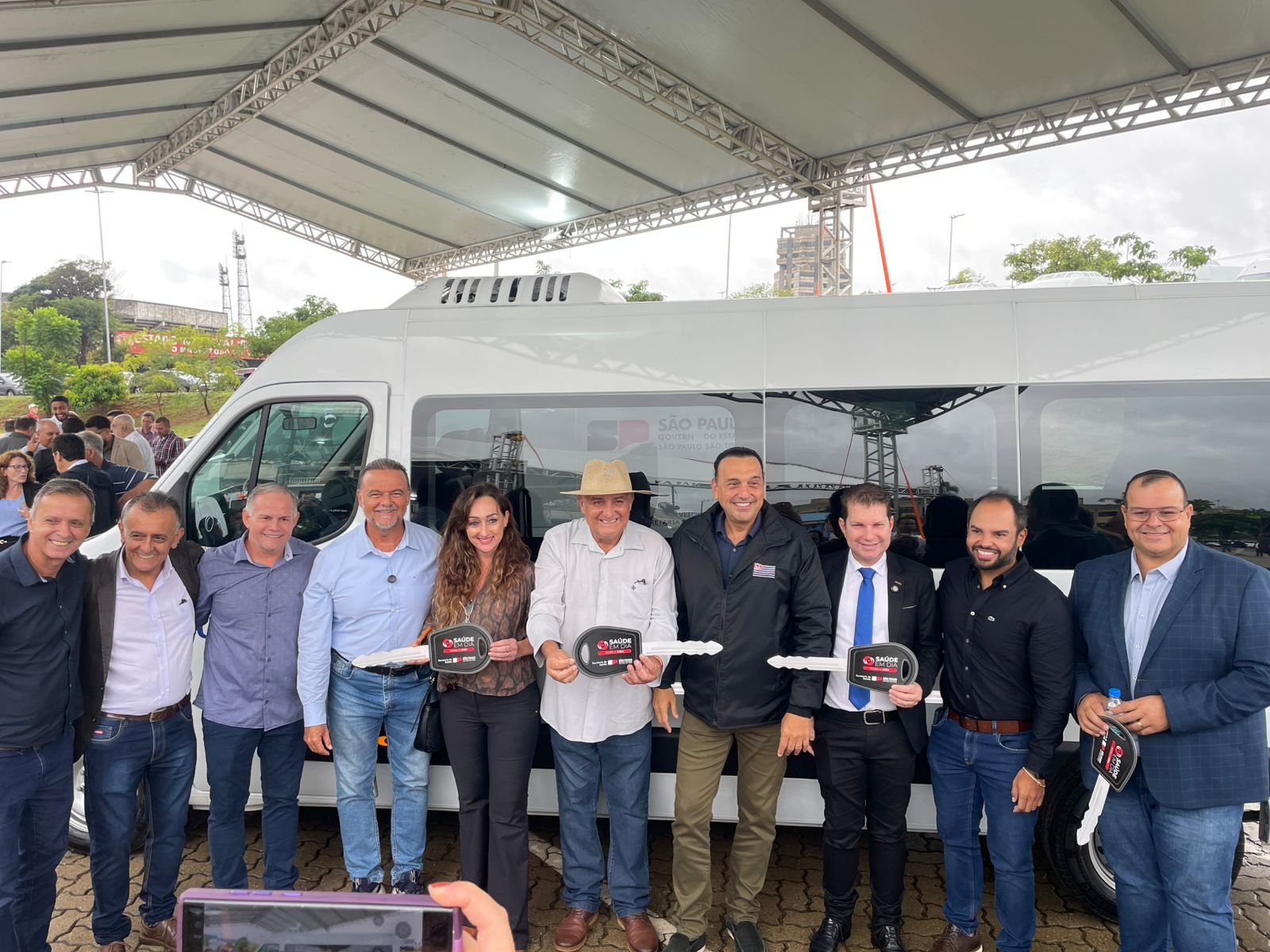 O prefeito de Taguaí, Edinho Fundão, e o vice-prefeito Rafael Corona participaram nesta quinta-feira (12) em Itu, da cerimônia de entrega de novos veículos destinados à área da saúde, realizada pelo governador do Estado de São Paulo, Tarcísio de Freitas.