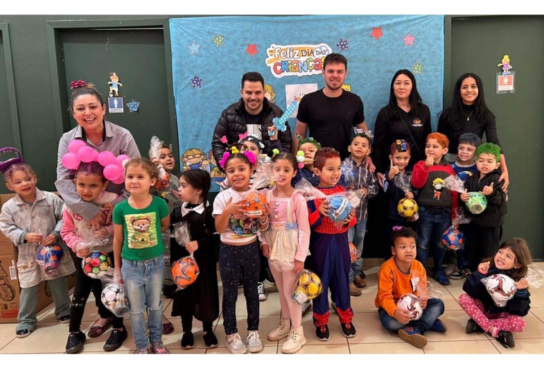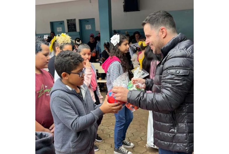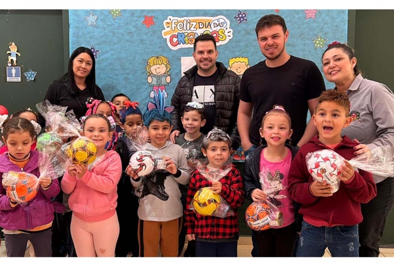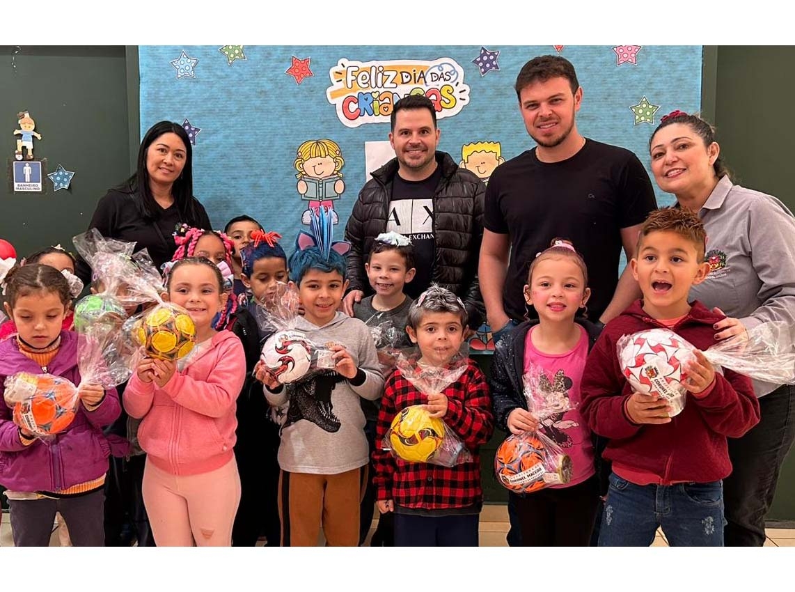 Todas as crianças da rede de ensino municipal receberam os presentes, transformando o ambiente escolar em uma festa. “Ver o sorriso de cada criança é o maior presente que podemos receber”, disse o vice-prefeito Vinicius Tonon.