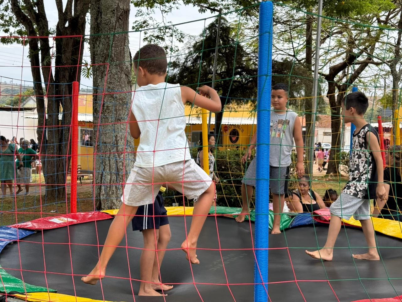 Foi um dia inesquecível para a garotada, marcado por muita alegria, diversão e brincadeiras. As crianças se esbaldaram nos brinquedos infláveis, pula-pulas, touro mecânico e outras atrações preparadas especialmente para elas.