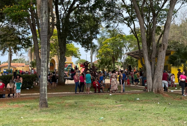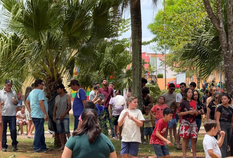 A Praça Adolfo Ramos da Silva ficou completamente lotada neste domingo (26) durante a tradicional Festa das Crianças, promovida com muito carinho pela Prefeitura de Sarutaiá, por meio dos Departamentos de Ação Social e Educação.