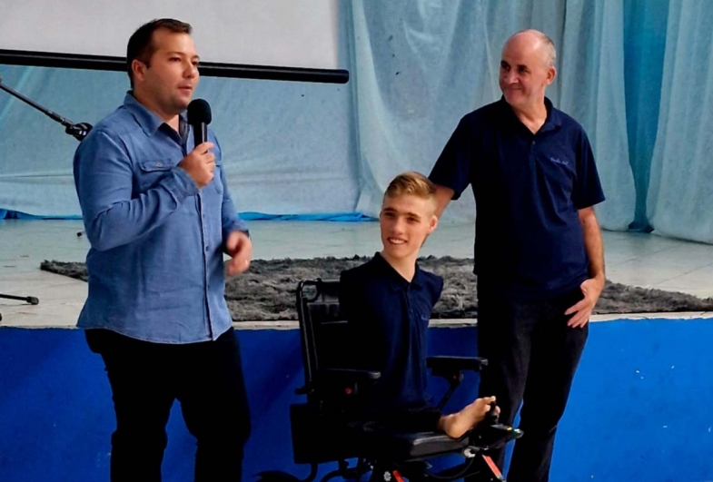Naturais do município de Mato Castelhano, no Rio Grande do Sul, a família compartilhou com o público uma emocionante trajetória de fé, esperança e superação. Em meio aos desafios da vida, destacaram a história de Tiago, nascido sem os braços e as pernas, cuja condição foi encarada pela família não como limitação, mas como uma verdadeira bênção de Deus.