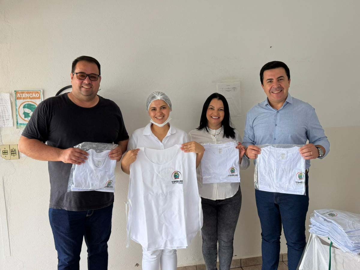 A Prefeitura Municipal de Timburi realizou, nesta semana, a entrega de camisetas e uniformes aos servidores e servidoras da Cozinha Piloto, reforçando o compromisso da administração com a valorização dos funcionários públicos e com melhores condições de trabalho.