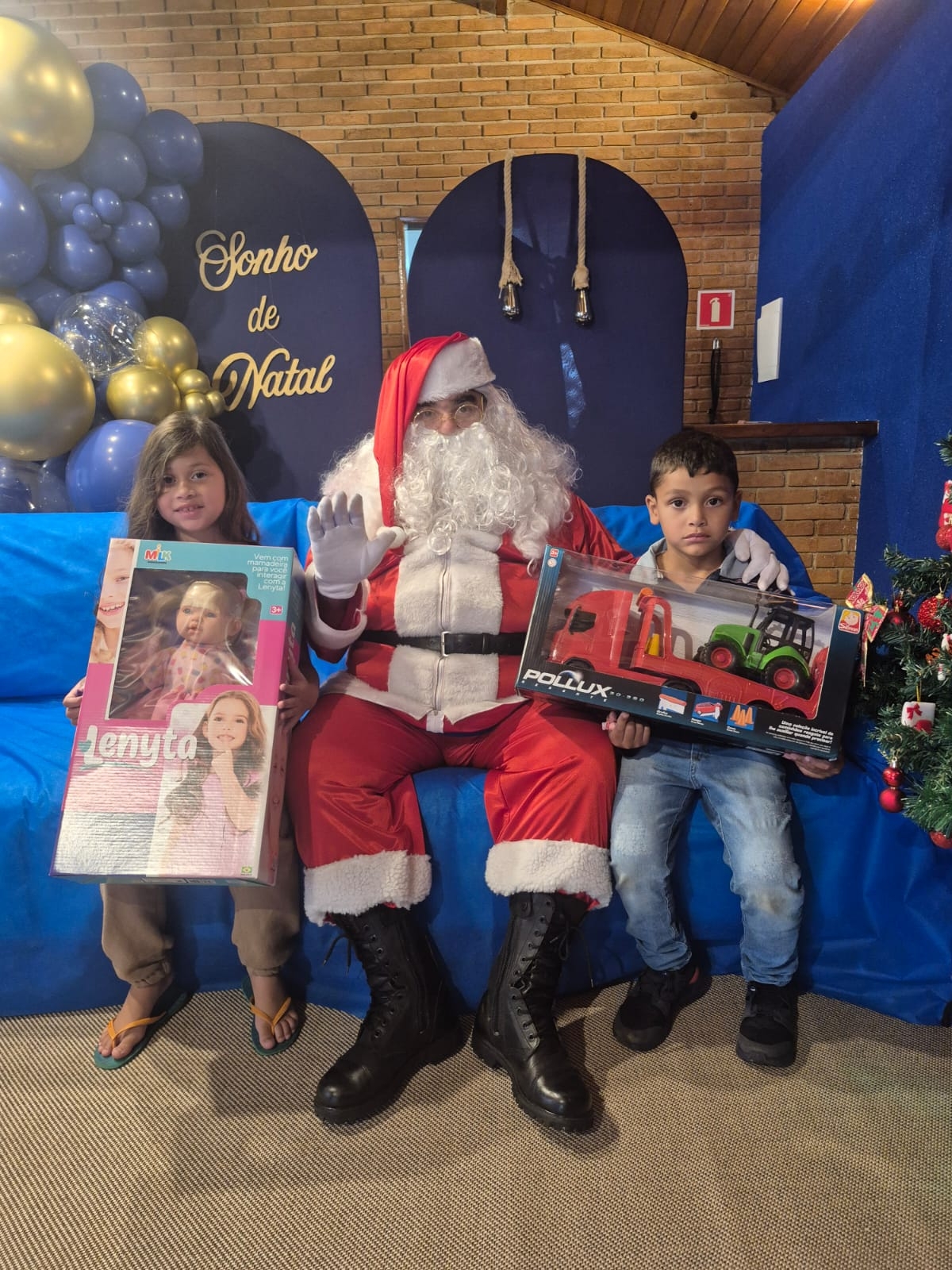 Os brinquedos escolhidos por Érika, uma boneca Lenyta com mamadeira e um caminhão guincho com trator, emocionaram as crianças e simbolizaram o cuidado e a atenção dedicados a cada família atendida. Pequenos gestos que fizeram grande diferença e ficaram guardados na memória de quem participou.