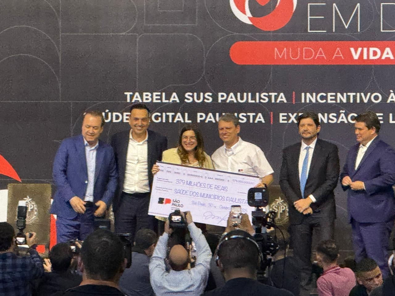 Na última quinta-feira (30), o prefeito João da Tapera e o vice-prefeito Gango estiveram no Palácio dos Bandeirantes, em São Paulo, participando de uma solenidade com o governador Tarcísio de Freitas. Durante o evento, o Governo do Estado liberou mais de R$ 300 milhões em recursos para diversos municípios paulistas.