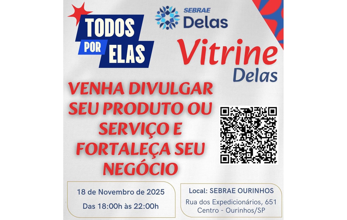 Em comemoração ao Dia do Empreendedorismo Feminino, celebrado mundialmente no dia 19 de novembro, o Sebrae-SP promove na terça-feira (18) a “Vitrine Delas”, um coffee de negócios exclusivo para mulheres empreendedoras que desejam divulgar produtos e serviços, ampliar redes de contatos e receber orientação estratégica para crescimento empresarial.