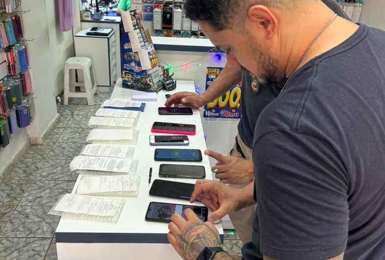 Durante a ação, os policiais civis realizaram vistorias minuciosas nos pontos previamente mapeados, examinando a procedência de aparelhos, carcaças e componentes eletrônicos. Em Paranapanema, a equipe da Delegacia esteve em uma loja local, onde foram analisados 40 aparelhos celulares, todos regularizados.