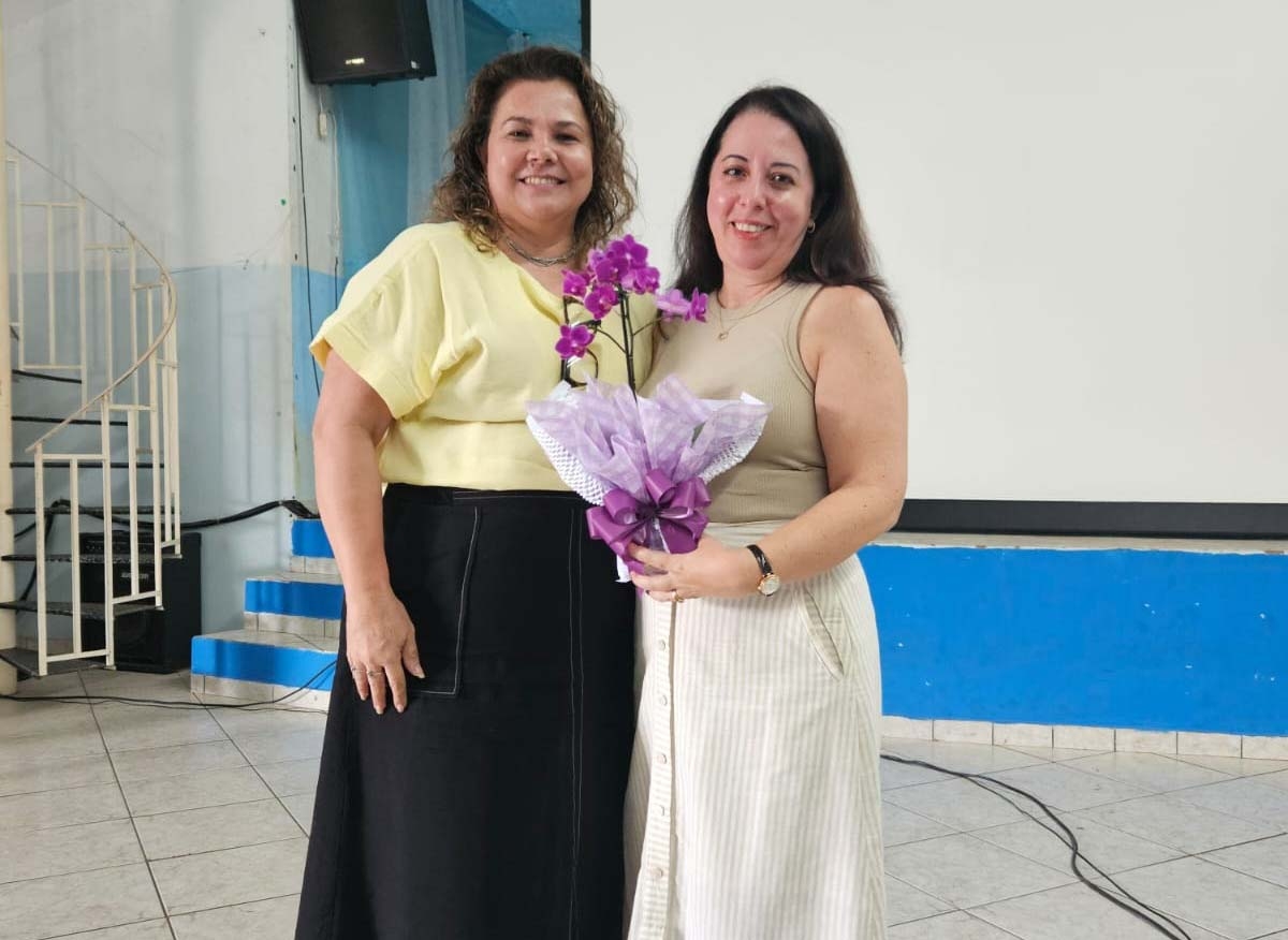 Ainda na programação do dia, a Prof.ª Dra. Ana Kobarg conduziu uma palestra sobre saúde emocional, inteligência emocional, mindfulness e bem-estar docente, reforçando a importância do cuidado com a saúde mental dos profissionais da educação.