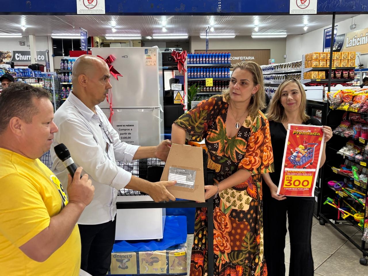 Durante o sorteio, diversos prêmios foram distribuídos, contemplando clientes com itens que vão desde eletrodomésticos até vale-compras. Foram premiados Neide Aparecida do Prado Amaro, que ganhou uma cesta de produtos Dona Nena; Laudelino Felipe Gomes, com uma caixa térmica de 45 litros; Maria Leonides Matos Camargo, com um cooler Stanley de 7,5 litros; Thais Bueno, que levou uma sanduicheira Multilaser; Eduardo Garcia, ganhador de uma cafeteira Oster de 1,2 litros; Ronaldo Lucarelli Oliveira, contemplado com um liquidificador Philips Walita; Marcio Rosa de Lima, com uma batedeira planetária Britânia; Thielle de Lima Damásio, ganhadora de uma fritadeira Air Fryer Multhome de 3 litros; Rosana Meneguel, com uma fritadeira Air Fryer Cadence de 3 litros; Alexandra Maria, que ganhou uma fritadeira HQ de 5 litros; Rosinei dos Santos Souza, contemplado com um fogão Atlas de quatro bocas; Josimara C. P. Almeida, que recebeu um tanquinho Britânia; Vera Lucia Pontes, ganhadora de uma geladeira HQ de 213 litros; Tatiana Paiva Duarte, com uma televisão de 43 polegadas com sistema Roku; Darcy Soares Junior, que levou uma bicicleta; e Janete C. Martins Cunha, contemplada com um vale-compras no valor de 300 reais.