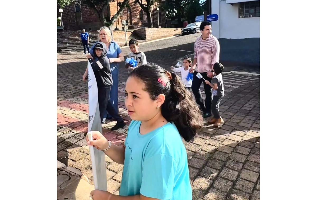 A iniciativa, promovida pela Secretaria Municipal da Educação, reuniu alunos da rede municipal, professores, equipe pedagógica e membros da comunidade em uma passeata marcada por mensagens de empatia, respeito e inclusão. A concentração teve início nas primeiras horas da manhã, na EMEF Gilda Zanforlin dos Reis Thosi, de onde os participantes seguiram até o Centro Comunitário 1, levando cartazes, símbolos e as cores que representam a causa.