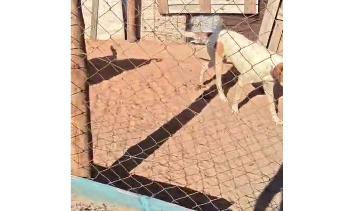 Ao chegar, a profissional constatou uma situação crítica: animais sem acesso à água e alimento, em condições precárias de higiene e mantidos em área delimitada por cerca eletrificada. Ao todo, oito cães foram encontrados na propriedade. Entre eles, uma fêmea apresentava um ferimento grave na região do pescoço, com necessidade urgente de atendimento.