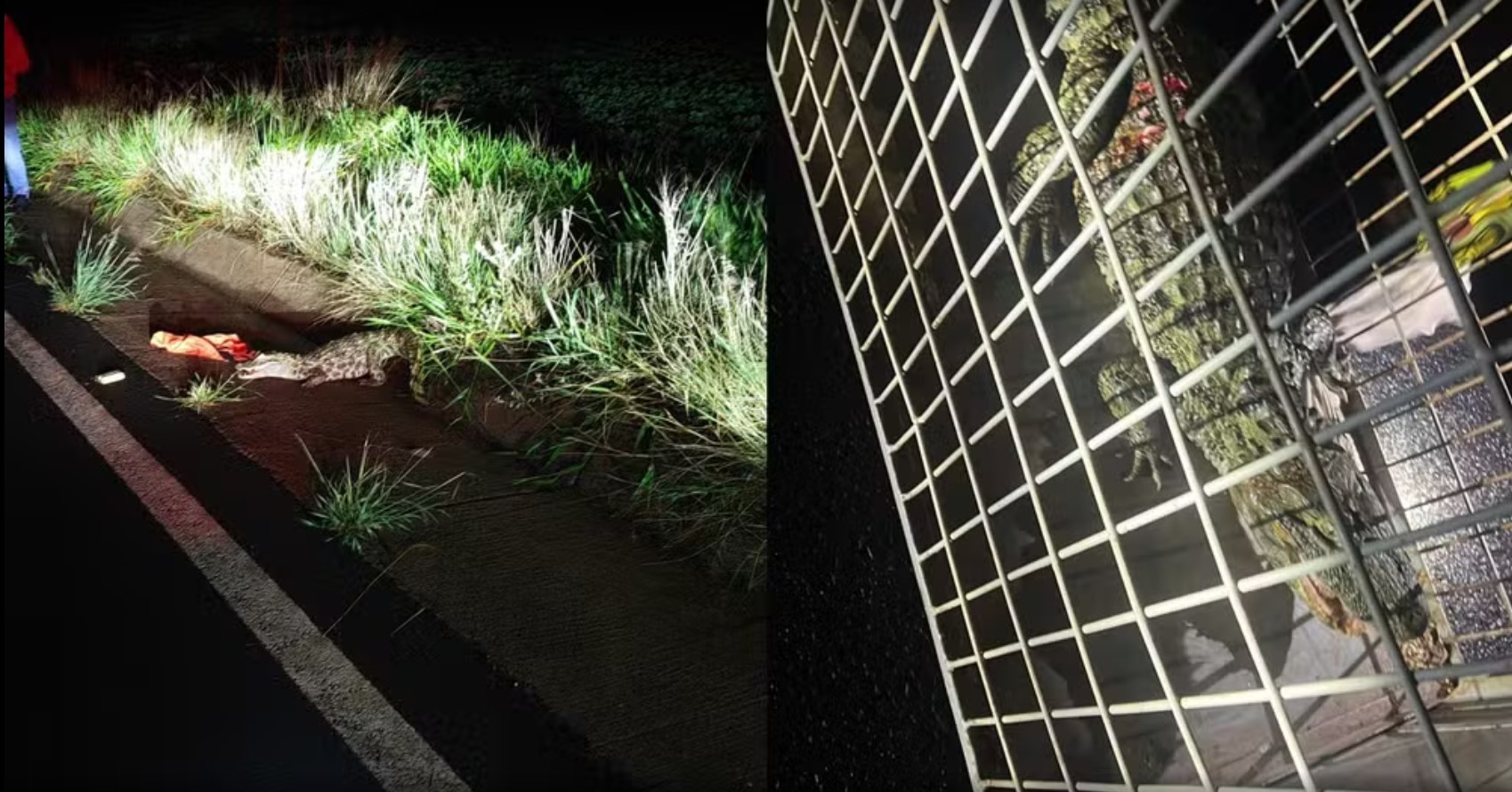 De acordo com a corporação, o animal apresentava diversos ferimentos compatíveis com atropelamento. O jacaré foi socorrido e levado para uma clínica veterinária.