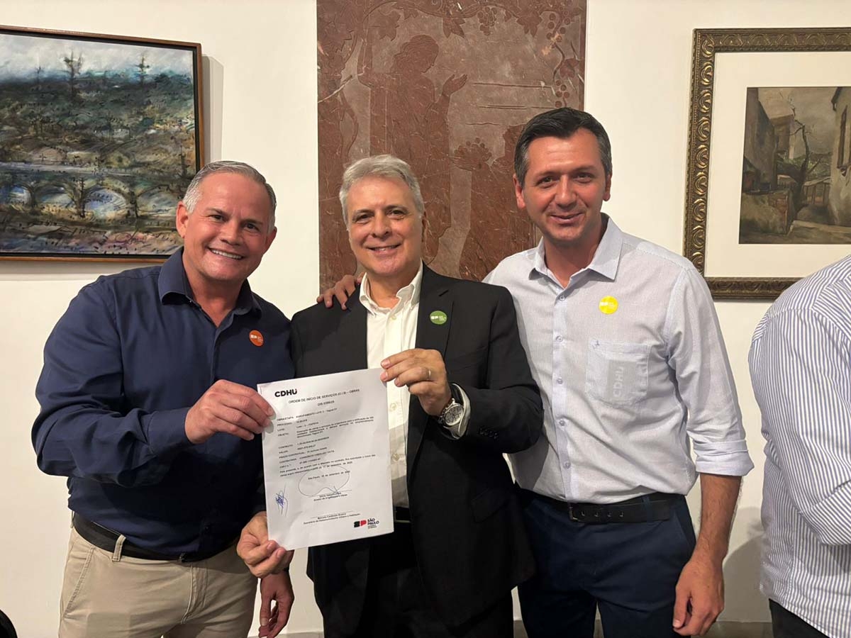 Na terça-feira (16), o prefeito Edinho Fundão, acompanhado do vice-prefeito Rafael Corona, esteve em São Paulo, no Palácio dos Bandeirantes, para o encontro que autorizou a construção de 127 unidades habitacionais do Programa da Companhia de Desenvolvimento Habitacional e Urbano (CDHU).