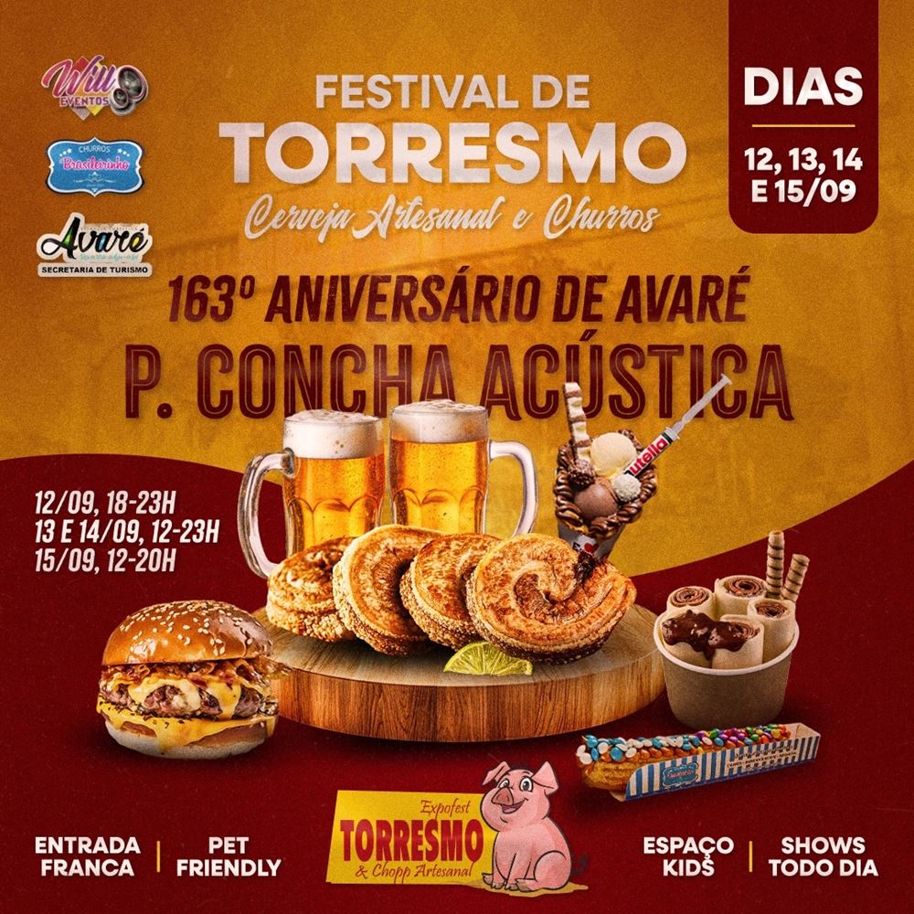 Festival do Torresmo - O Festival de Torresmo que acontece nos dias 12, 13, 14 e 15 de setembro na Concha Acústica é mais uma atração em comemoração ao 163º aniversário de Avaré.