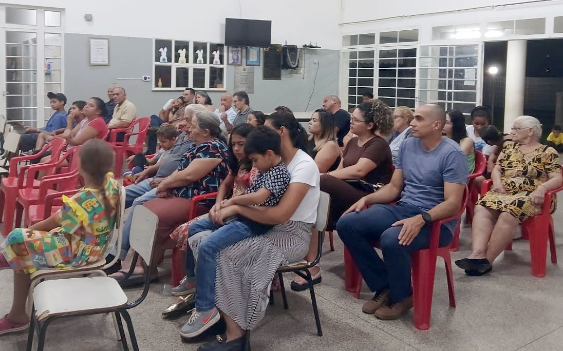 A noite, às 19h30, inicia-se a Semana de Saúde Emocional com momentos de oração, rodas de conversa e convivência, sorteio de brindes, criando um ambiente de escuta ativa e fortalecimento emocional.