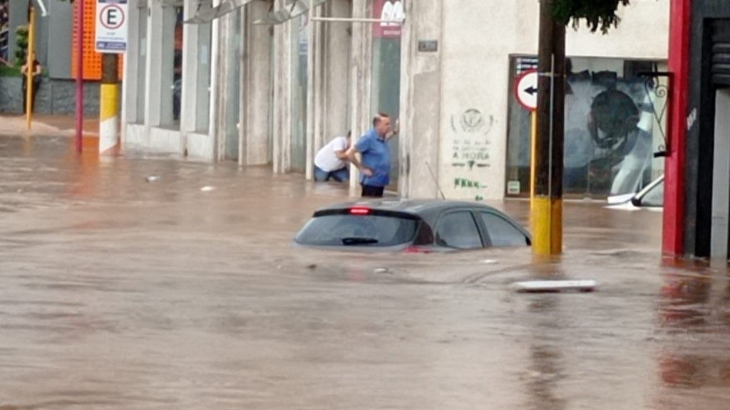 Um vídeo enviado à TV TEM mostra o veículo que estava na rua desaparecendo em meio à correnteza. No momento, moradores também correram para retirar uma idosa de dentro de uma casa que fica próxima ao buraco aberto na via.