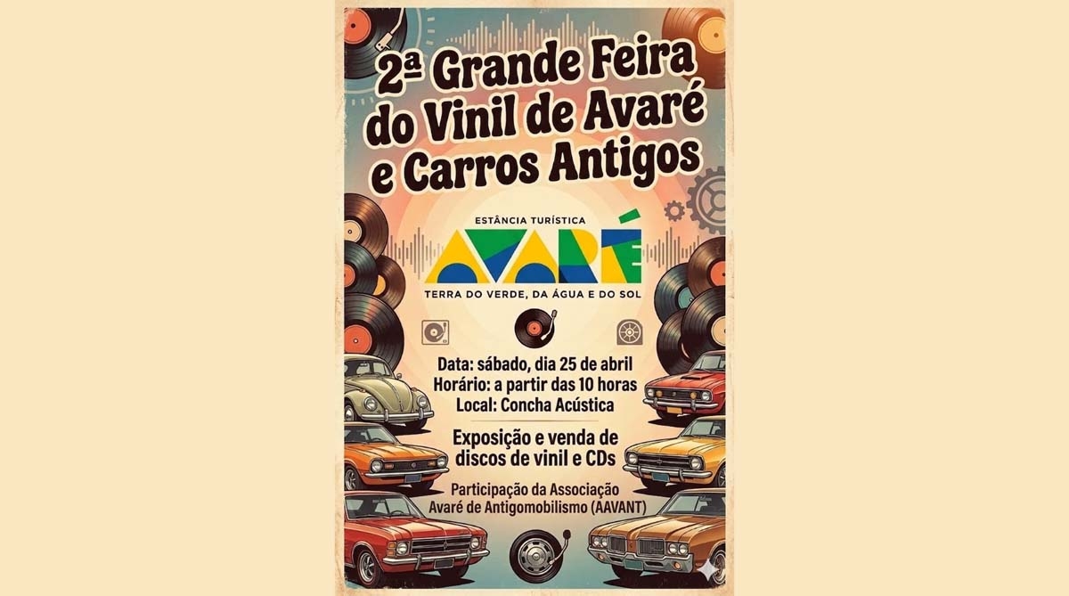 A 2ª Grande Feira do Vinil de Avaré já tem data marcada: sábado, 25 de abril, das 10h às 17h, na Concha Acústica (Praça Prefeito Romeu Bretas).