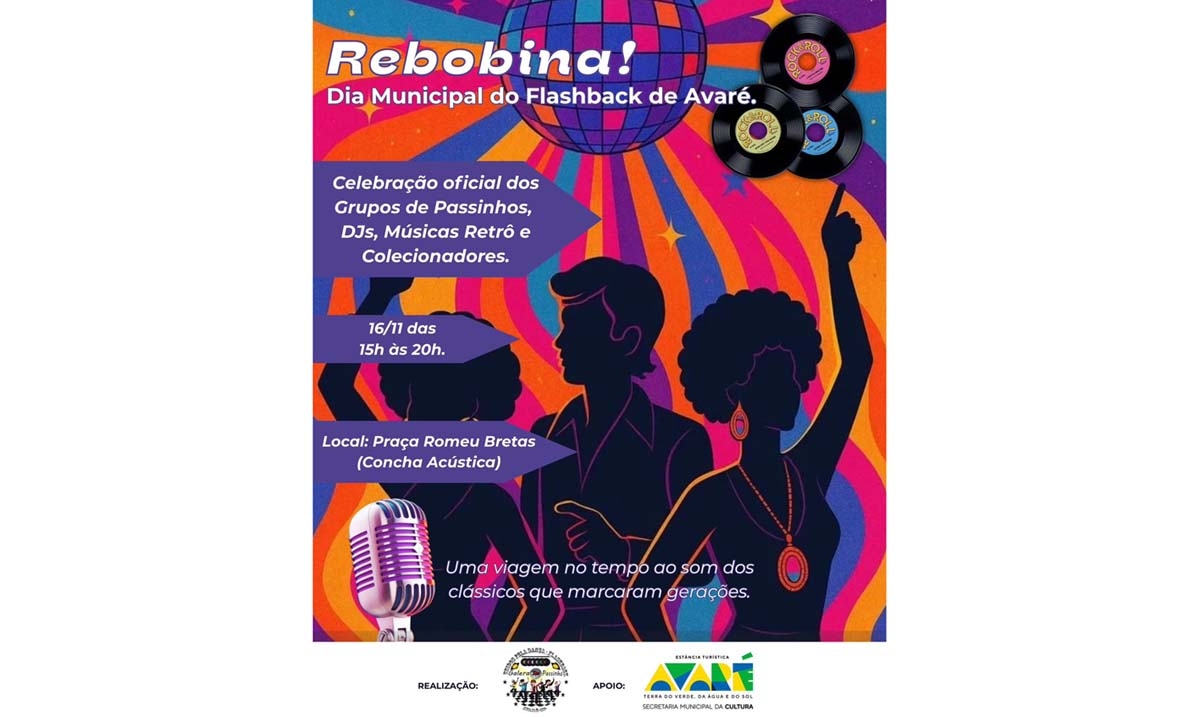 Uma viagem no tempo ao som de clássicos que marcaram gerações. Essa é a proposta do Rebobina: Dia Municipal do Flashback, que será realizado neste domingo, 16, em Avaré.